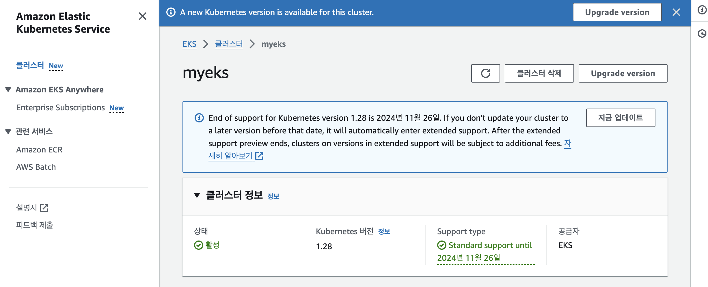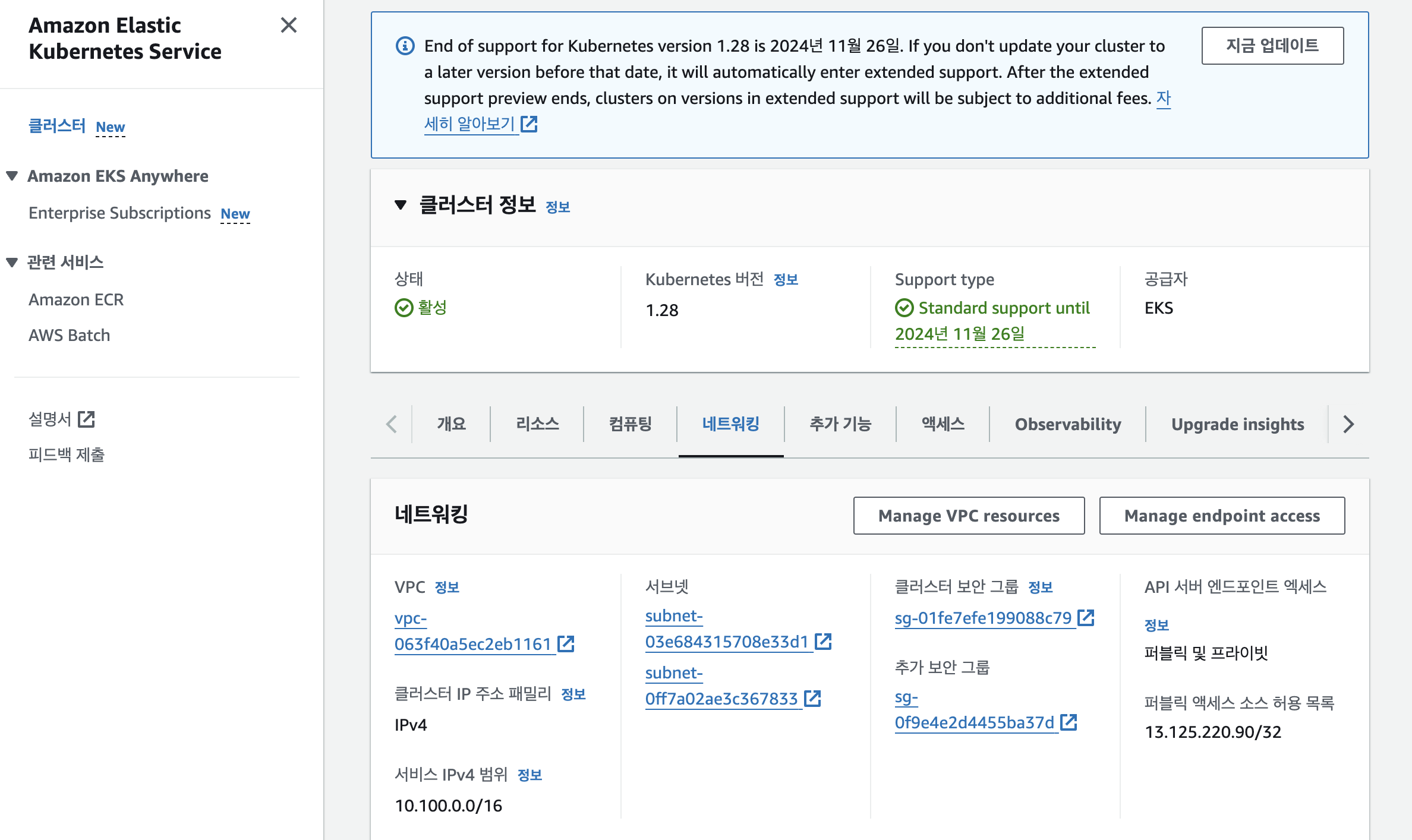 EKS 정보를 확인해보겠습니다.