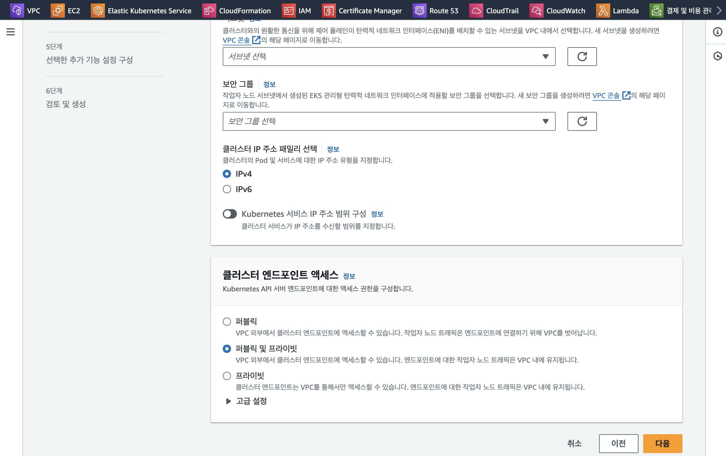 지금의 eks는 퍼블릭으로 생성되 있습니다. 요거를 퍼블릿+프라이빗으로 변경해보겠습니다.