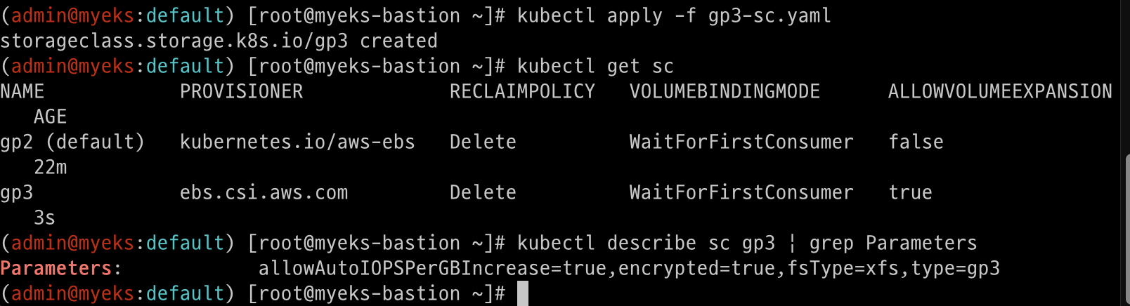 cat <<EOT > gp3-sc.yaml