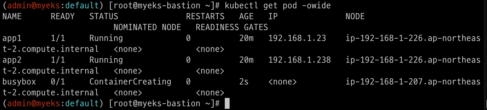 ip-192-168-1-65.ap-northeast-2.compute.internal Ready <none> 93m v1.28.5-eks-5e0fdde ON_DEMAND ng1
