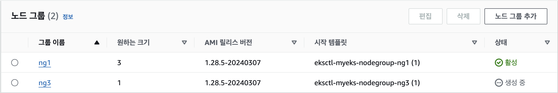 노드 그룹 생성 중