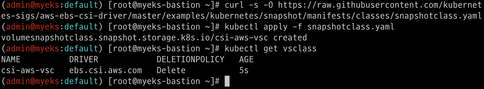 eksctl create addon --name aws-ebs-csi-driver --cluster ${CLUSTER_NAME} --service-account-role-arn arn:aws:iam::${ACCOUNT_ID}:role/AmazonEKS_EBS_CSI_DriverRole --force