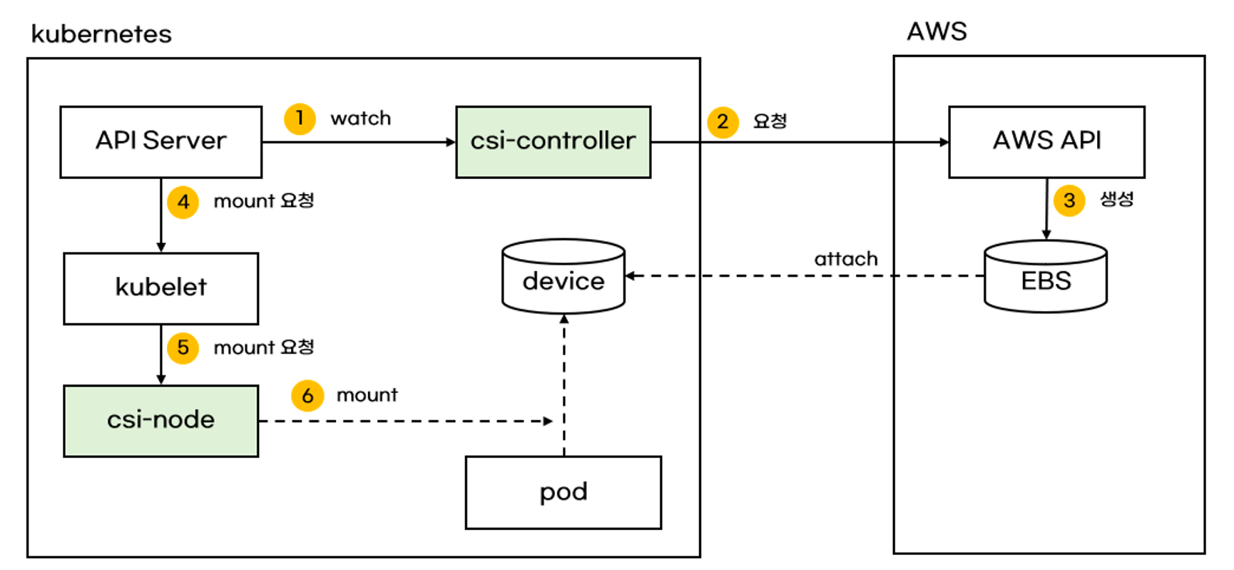 Volume (ebs-csi-controller) : EBS CSI driver 동작 : 볼륨 생성 및 파드에 볼륨 연결 - 링크