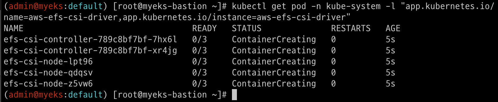 kubectl get pod -n kube-system -l 'app in (ebs-csi-controller,ebs-csi-node)'