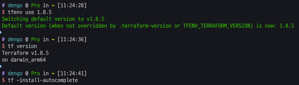 tfenv use 1.8.5