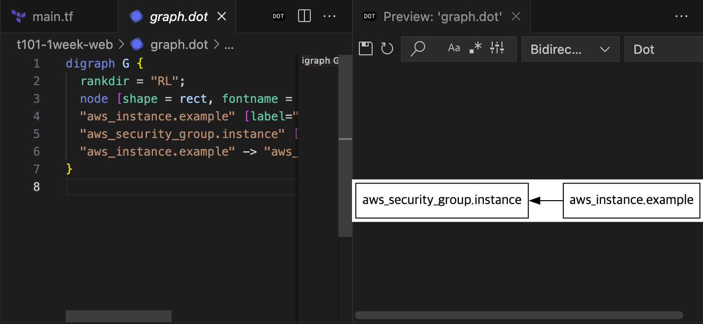 - 테라폼은 종속성 구문을 분석하여 종속성 그래프를 작성하고, 이를 사용하여 리소스를 생성하는 순서를 자동으로 결정함