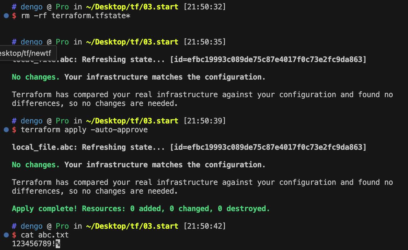 local_file.def: Creation complete after 0s [id=b9fbde4d33ab9c450a7ce303fb4788c9d2db9aed]