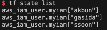 - main.tf 파일 수정 : count 경우와 유사하게 중간 값을 삭제 후 확인