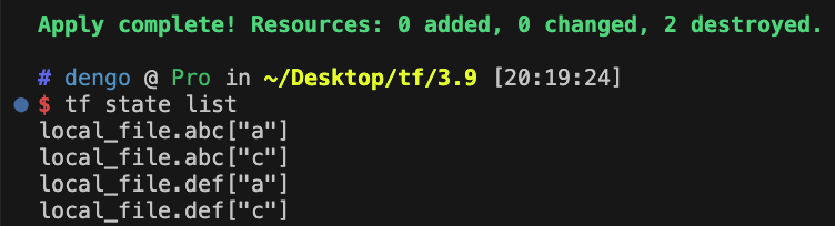 terraform state show 'local_file.def["a"]'