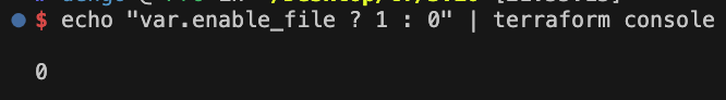 echo "var.enable_file ? 1 : 0" | terraform console
