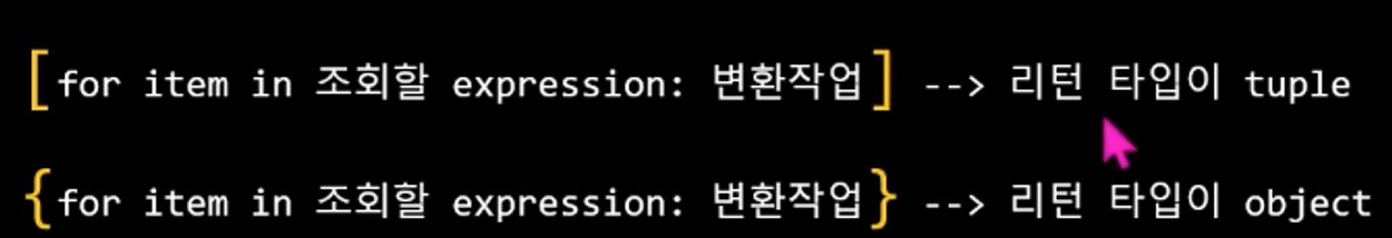 # { } 형식을 사용해 object 형태로 결과를 반환하는 경우 키 값은 고유해야 하므로 값 뒤에 그룹화 모드 심볼(…)를 붙여서 키의 중복을 방지