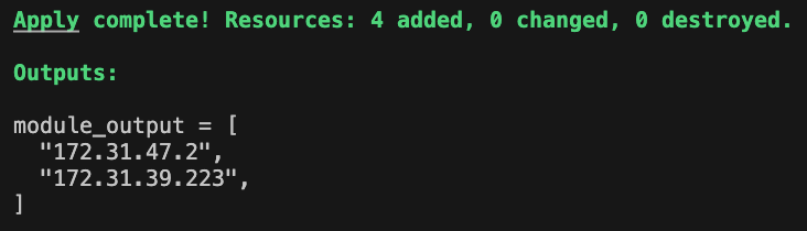 Apply complete! Resources: 2 added, 0 changed, 0 destroyed.