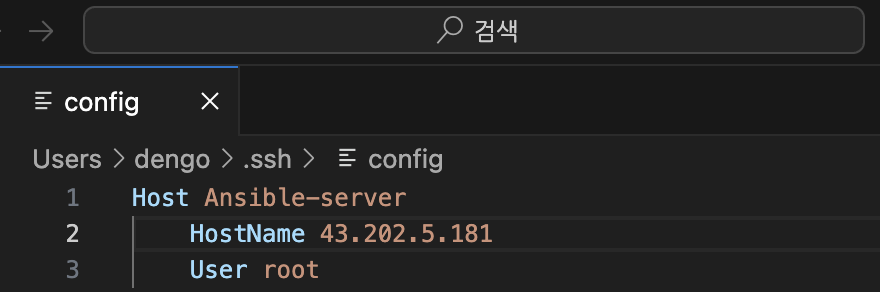HostName 50.1.1.1 <- 각자 자신의 ansible-server 의 유동 공인 IP