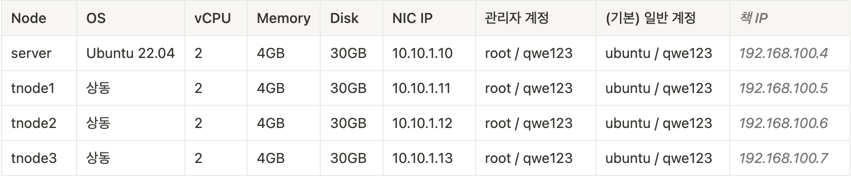 아래 인스턴스 설정 정보를 자세히 보면 호스트 이름 설정, hosts파일에 node1,2,3의 ip정보를 입력한 것을 볼 수 있습니다.