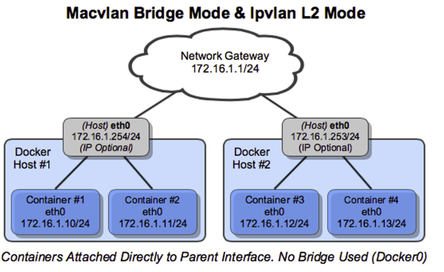 docker network create -d ipvlan --subnet=192.168.50.0/24 --gateway=192.168.50.254 -o parent=enp0s8 my_ipvlanl2