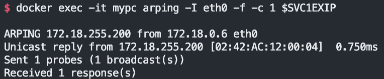 docker start <svc1 번 리더 Speaker 파드가 존재하는 노드(실제는 컨테이너)>