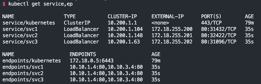 # 확인 : ExternalIP 도 결국 ClusterIP를 사용(포함)