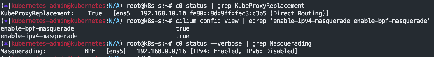KubeProxyReplacement: True [ens5 192.168.10.10 fe80::57:abff:fee3:da8d (Direct Routing)]