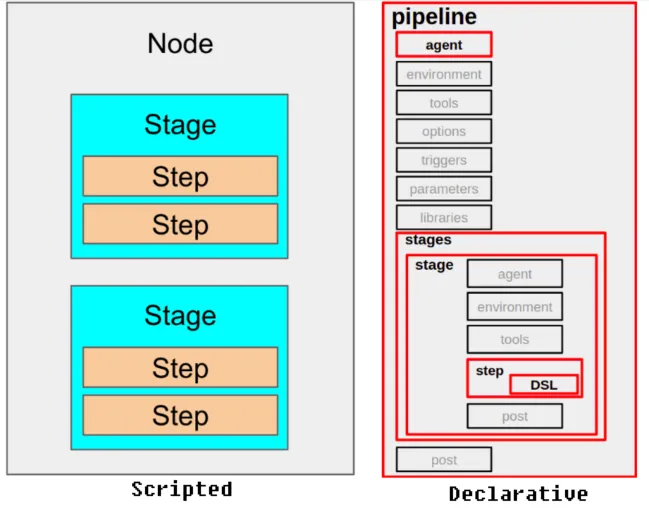 파이프라인 2가지 구문 : 선언형 파이프라인(권장)과 스크립트형 파이프라인