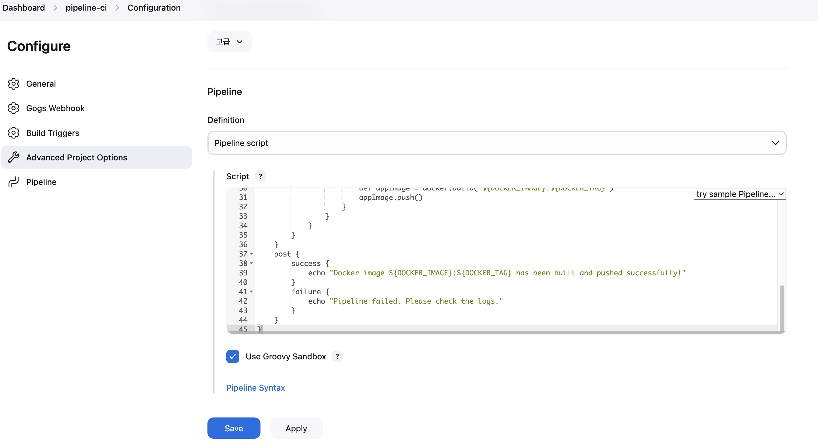 - Script Path : Jenkinsfile