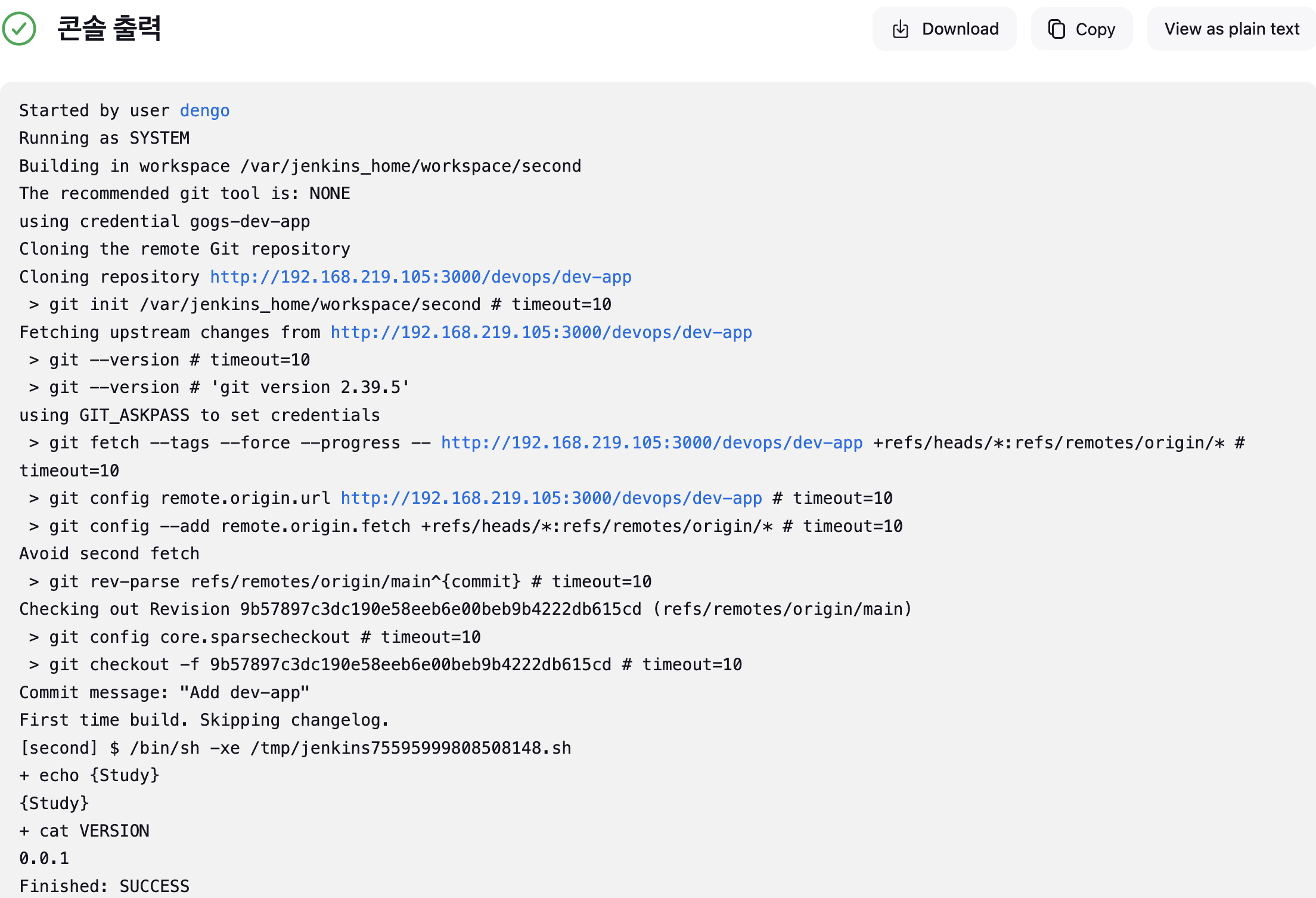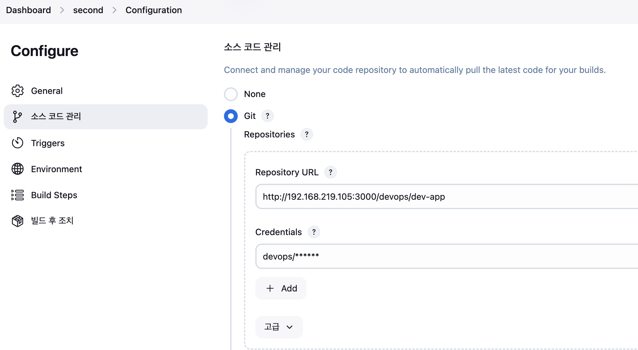 url: 'http://192.168.254.124:3000/devops/dev-app.git', // Git에서 코드 체크아웃