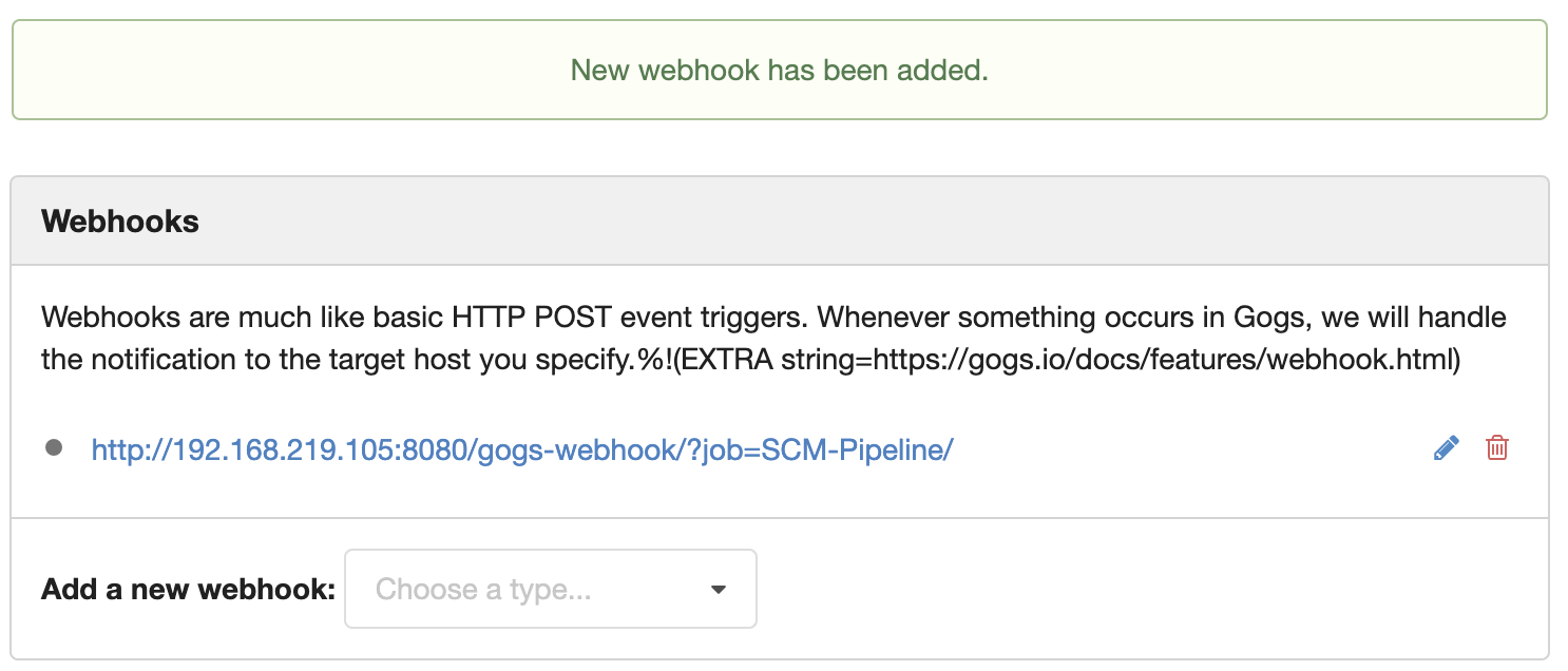 Payload URL : http://192.168.254.124:8080/gogs-webhook/?job=**SCM-Pipeline**/