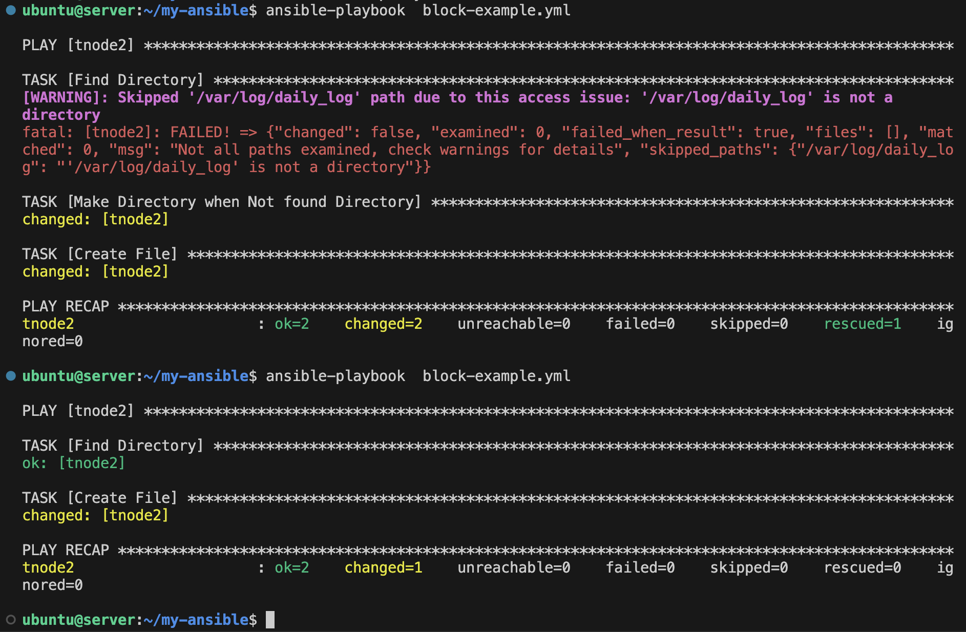 - 어떤 명령이라도 실행된 경우에는 태스크 실행 상태를 항상 changed 로 한다.